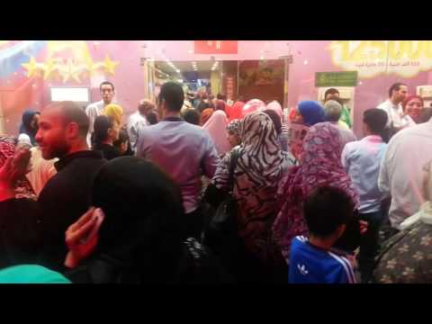 لحضة انتهاء حفل العيد السنوى الخامس وتدافع العملاء على الدخول هايبر بلس